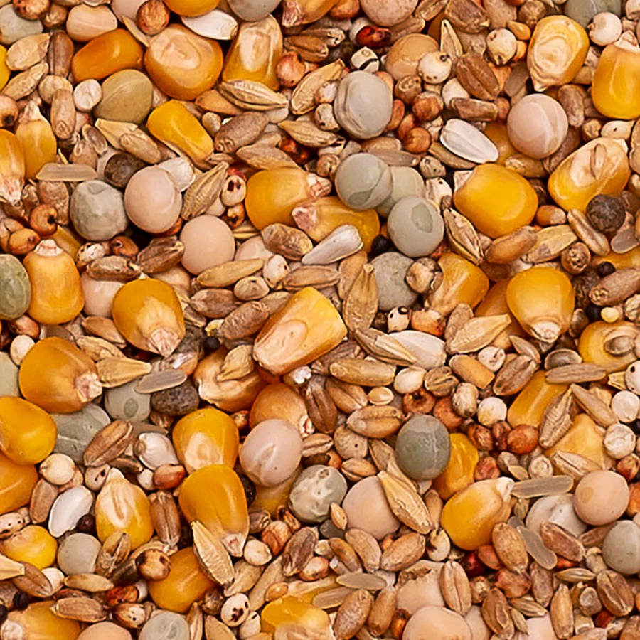 | Samenstelling | Cribbs maïs – tarwe – gele erwten – groene erwten – cardy – merano mais – erwten maple peas – Plata mais – witte dari – sorgho rood – peenerwten – erwten dunpeas – kleine gele erwten – vitsen/wikken |