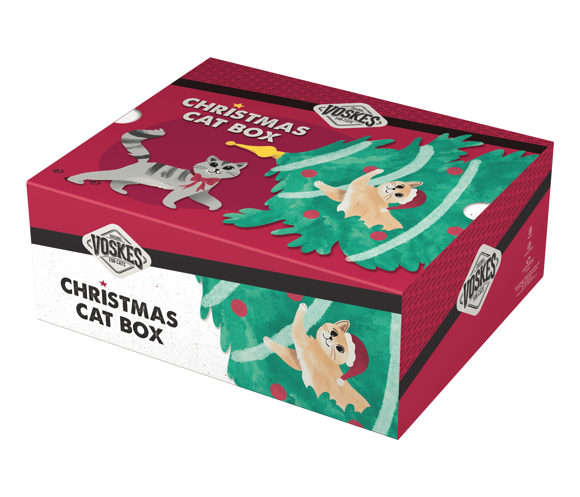 Verras je huistijger dit jaar met de Voskes Kerstbox: een feestelijke cadeaubox vol lekkers, ideaal voor onder de kerstboom. Deze limited edtion bevat een gevarieerd pakket boordevol lekkers voor je kat, gratis speeltjes en dit in een mooie kerstverpakking. De Voskes Kerstbox laat je kat spinnen van geluk!
